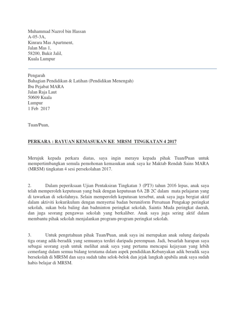 Permohonan kemasukan mrsm tingkatan 4.